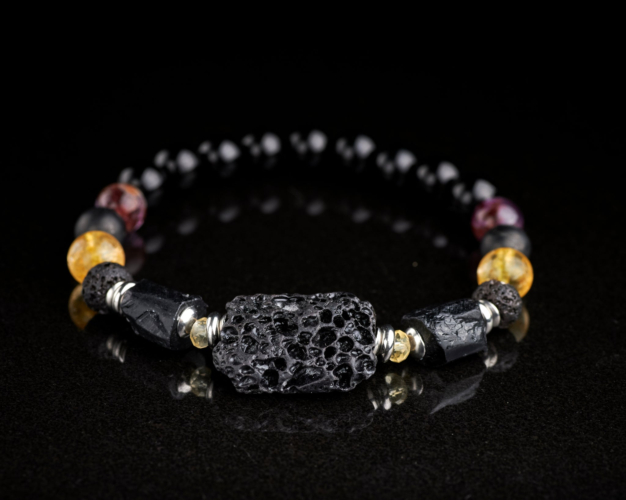 Black Lava Tourmaline Citrine Spiritual Protection Bracelet