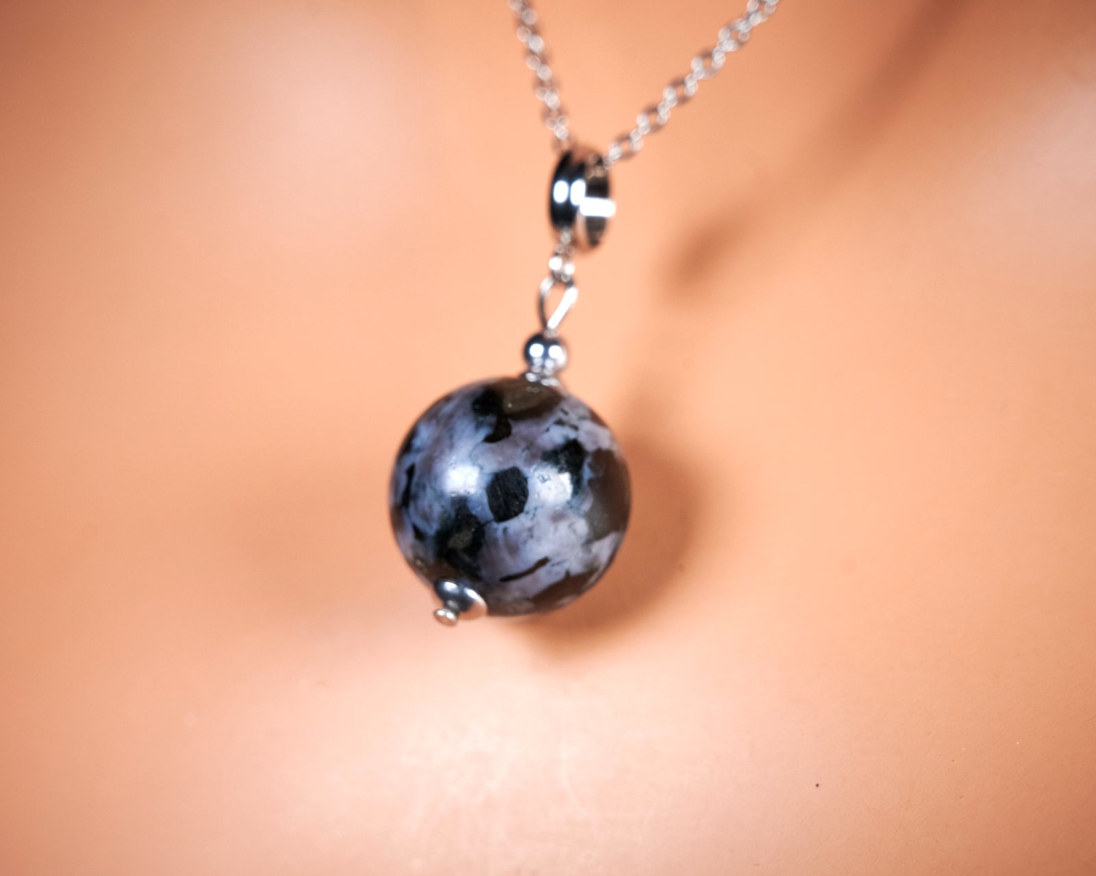 16mm large Genuine natural Mystic Merlinite pendant. Indigo Gabbro pendant. Mystic Merlinite indigo gabbro stainless steel adjustable necklace necklace 15"18"