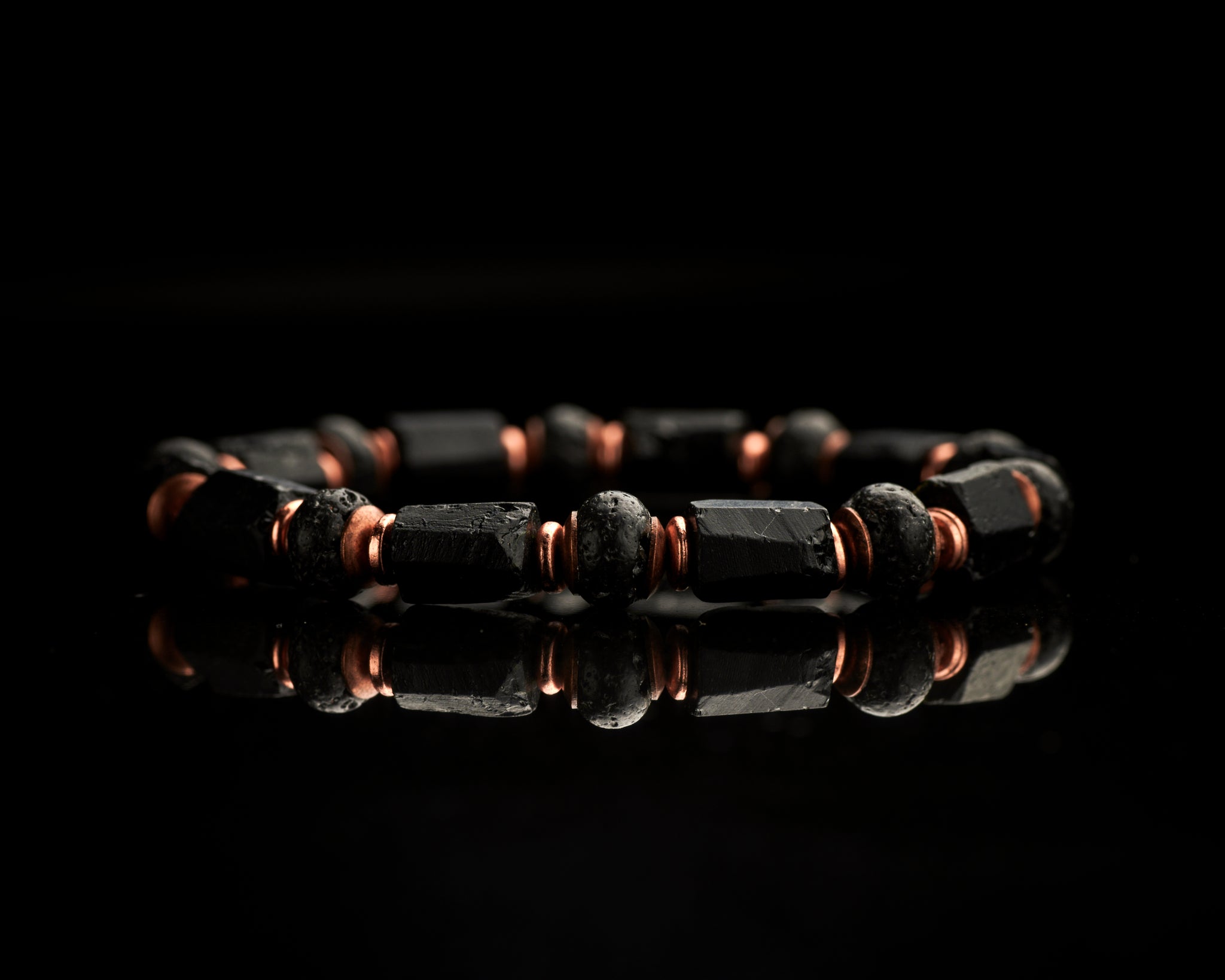 Men's genuine raw black Tourmaline Volcanic black Lava raw solid copper stretch spiritual meditation bracelet
