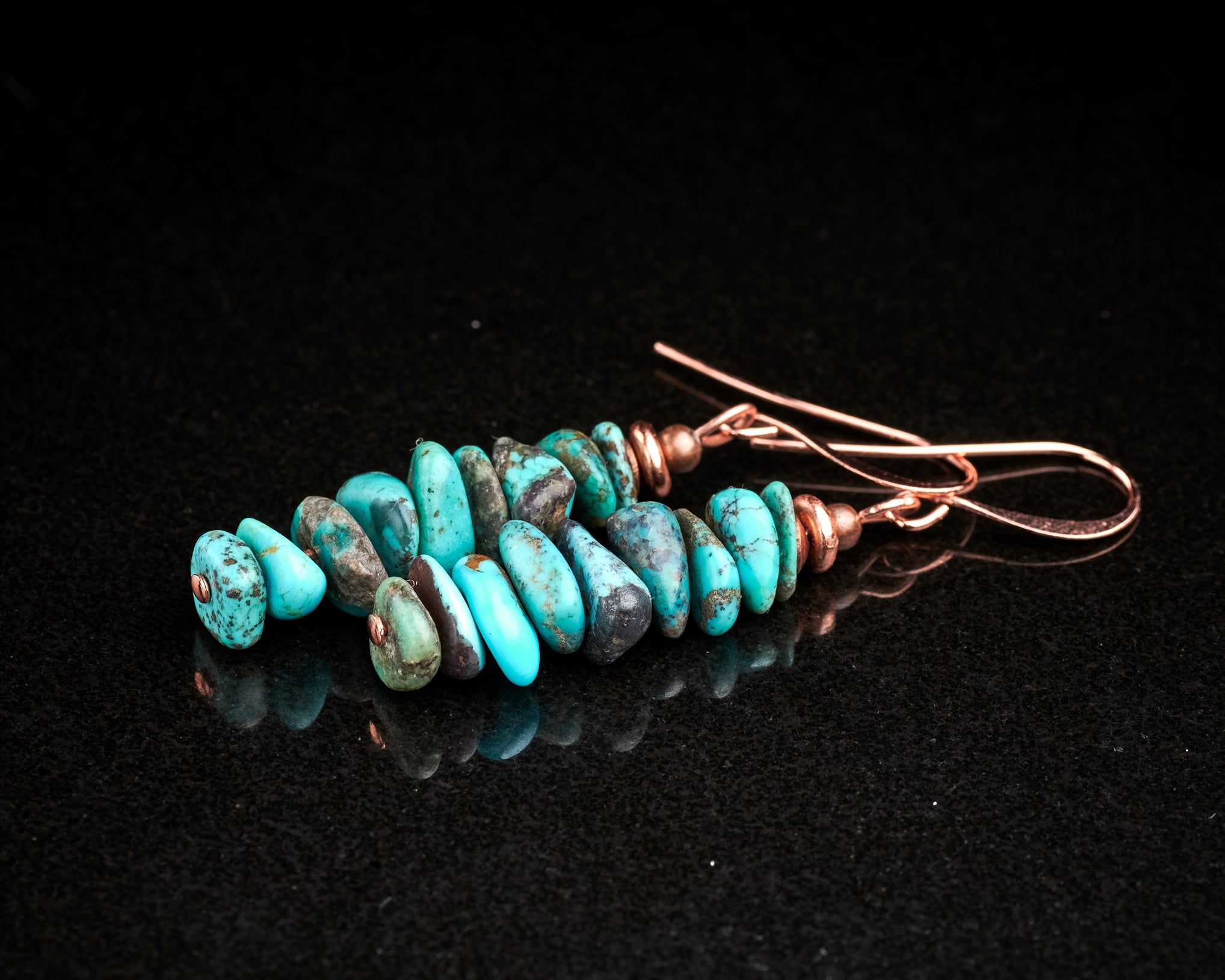 Untreated Genuine American Kingman blue Turquoise solid copper earrings 6cm long